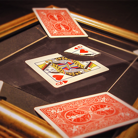 お客さんにカードや写真から1枚選んでもらいます。お客さんのスマホで何も写っていないチェキのフィルムや鏡を写真に撮ってもらうと、フィルムや鏡にお客さんの選んだカードや写真が写ります。