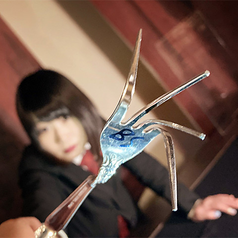 コインのグラス貫通をお客さん自身にやってもらいます。