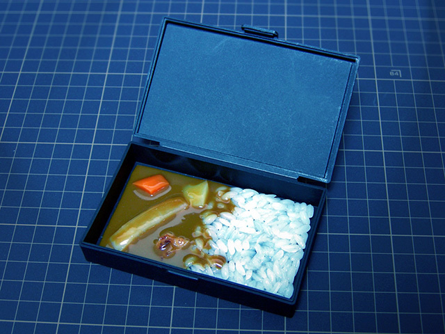 名刺ケースからいろいろなメニューの描かれたカードを取り出し、観客にメニューの1つを覚えて、ケースに入れてもらいます。マジシャンは覚えたメニューを当てようとしますが外してしまいます。何を覚えたか、観客にケースを開けてもらうと、メニューのカードがメニューの模型になっています。