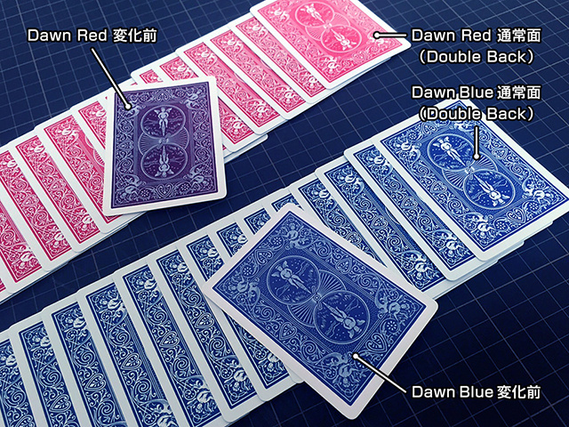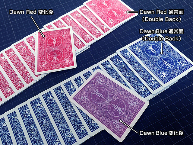 Dawn Redは赤デック用で「違う色が同じ色になる」、Dawn Blueは青デック用で「同じ色が違う色になる」という使い方をしますが、ギミックカードは可逆性もありますので、それぞれ逆の使い方もできます。
